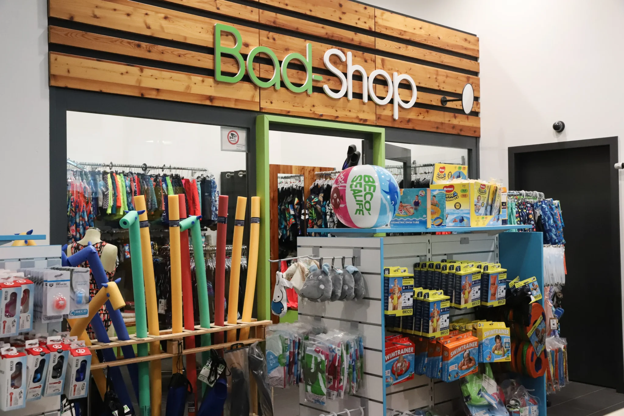 In the entrance area of AquaNat’Our, you’ll find our swimwear shop offering a wide selection of swim and wellness products. We provide high-quality items from brands such as Fashy, Beco, Funkita, Ysabel Mora, Wewo and Arena.