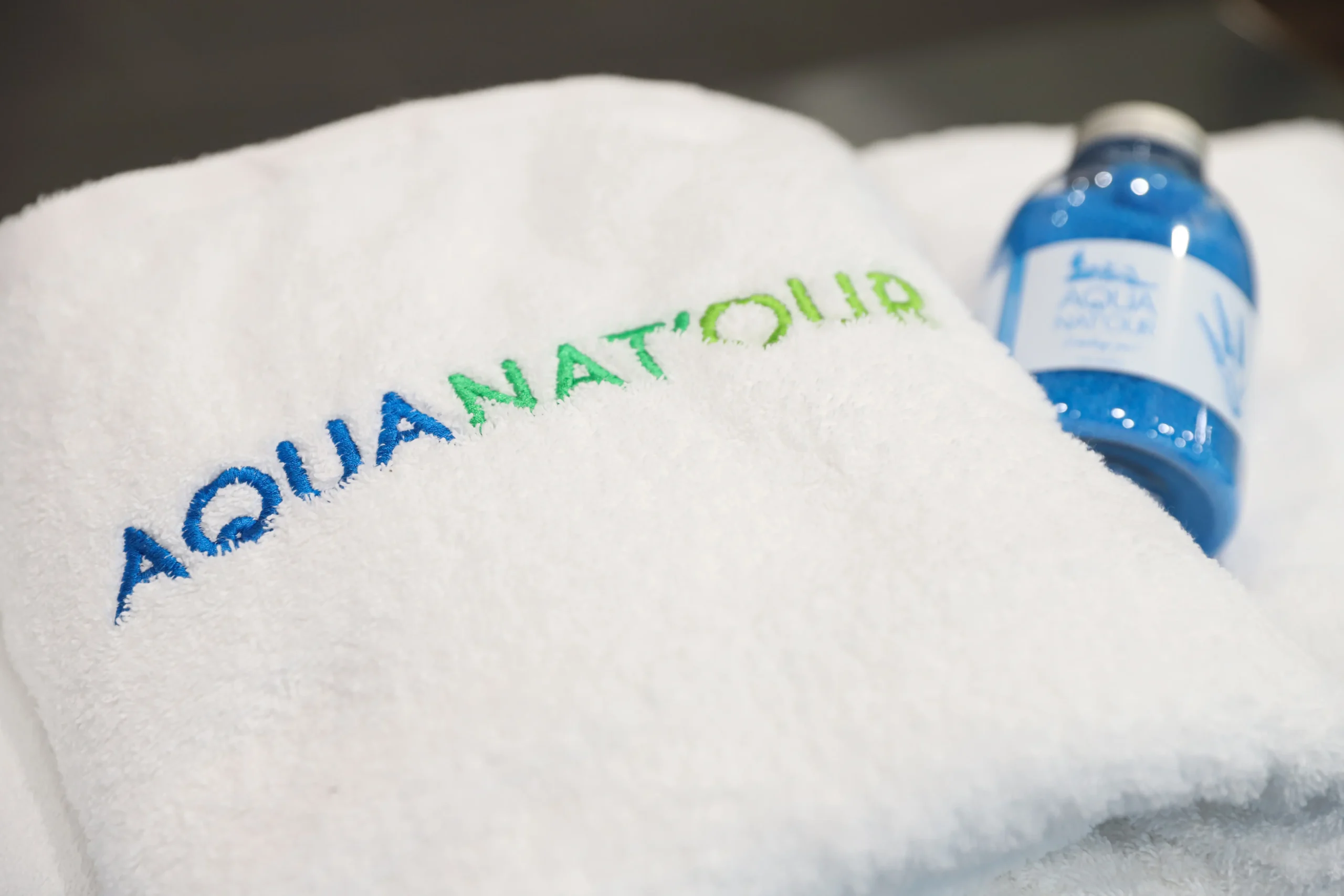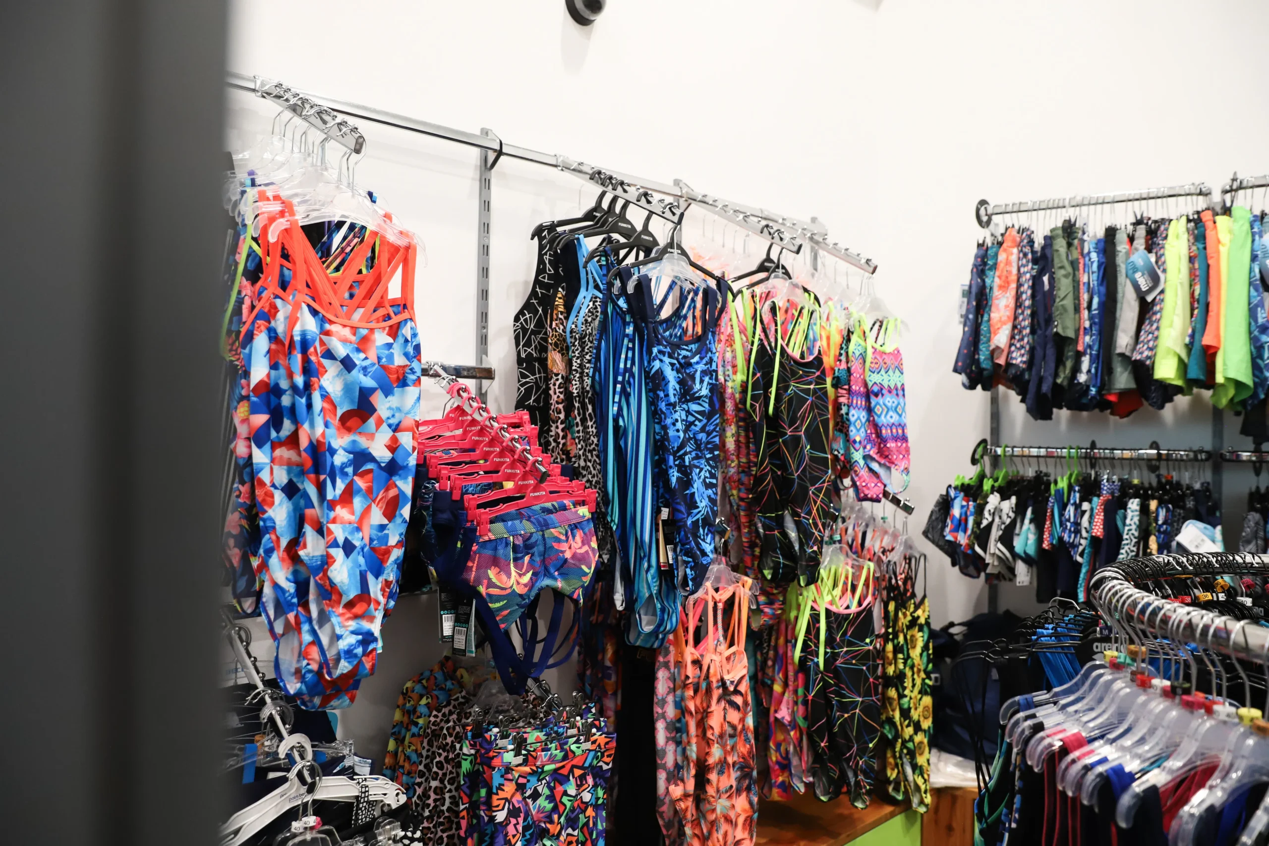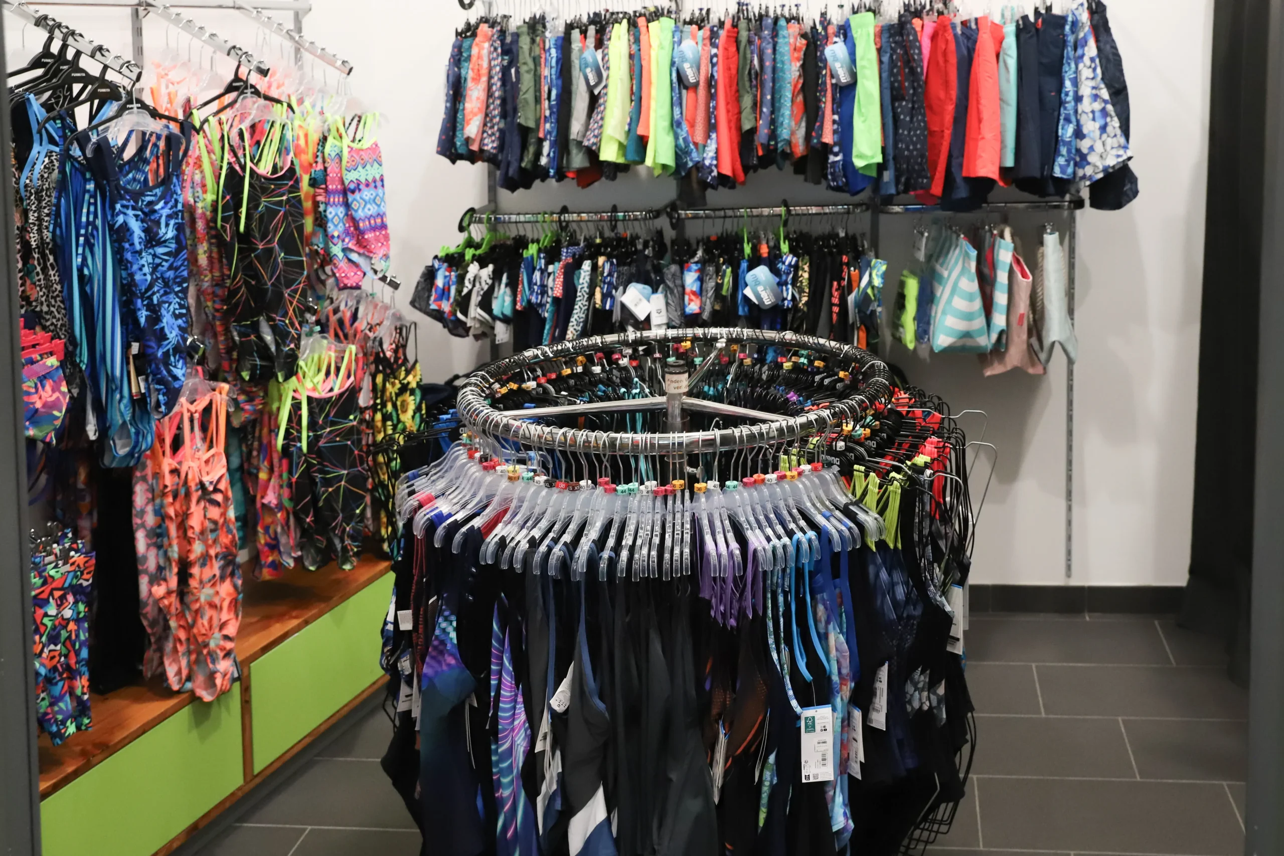 Im Eingangsbereich des AquaNat‘Our finden Sie unseren Bademodenshop mit einer großen Auswahl an Bade- und Wellness-Produkten. Wir bieten Ihnen hochwertige Produkte von Marken wie Fashy, Beco, Funkita, Ysabel Mora, Wewo und Arena an.